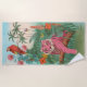 Hit the beach with a splash of exotic flair using this Pink Tiger and Parrot Tropical Jungle beach towel. Featuring a whimsical illustration of a pink tiger and a colourful parrot amidst lush tropical foliage, this towel captures the playful and enchanting spirit of the jungle. Perfect for adding vibrant style to your beach outings, it combines functionality with eye-catching design, making it a delightful addition to your fun-in-the-sun essentials.