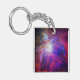 Digitally tinted space image of the Orion Nebula. The digital effect brings out magenta, pink, and bright blue colours.