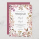 Beautiful pink toile design of various shades of mauve flowers, butterflies & birds surround the perfect fonts and typography for this lovely wedding invitation. The perfect wedding invitation for any season wedding.