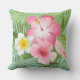 Pink Tropical Hibiscus Flowers Outdoor Pillow
