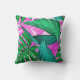 This bright tropical accent pillow features a background of pink palm leaves with different shades of green palm leaves scattered on top. Perfect for any tropical beach decor and works well with both indoor and outdoor settings!