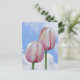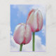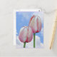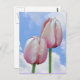Pretty pale pink tulips with lingering raindrops against a blue sky with fluffy white clouds flower nature photography by Susan postcard. You can personalize this postcard with any text or message you like by clicking on Customize. Matching postage stamps are available. This image is available on many products in my gallery.