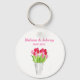 Pink Tulips floral watercolor elegant Wedding Keychain