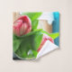 Pink tulips on matching (and available separately) bath towel, hand towel and wash cloth. Coordinating Soap and toothbrush holder set is available.