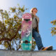 Pink Turquoise Watercolor Artistic Monogram Wolf Skateboard