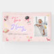 Cette bannière d'anniversaire d'espace présente les années 70 texte rétro, des couleurs roses et violettes et des illustrations d'espace. Les illustrations sont des planètes, des étoiles et un navire-fusée. L'arrière - plan est rose girly, ce qui en fait la bannière parfaite pour célébrer votre petit astronaute.