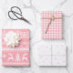 Christmas gift wrapping paper set feature ugly Christmas sweater pattern, buffalo plaid and heart shapes pattern on colour editable soft pink background.