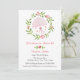 This pretty shower invitation features a watercolor look floral wreath with a sweet pink umbrella in the centre, which can be used as a baby or bridal shower invitation by adding the appropriate text above the small pink heart with green leaves. Coordinating items available.
