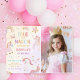 Pink Unicorn Four Ever Magical Birthday Photo Invitation
