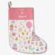 Add a cute custom touch to your seasonal holiday living room decor with this adorable pink party pattern Christmas stocking. Stocking has fun girly items like a unicorn, hot air balloon, doll, balloon, cake, and cupcake. Add a first name, monogram initial, and heart for a personalized touch.