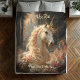 This fleece blanket features a white unicorn with a flowing pink mane, standing among delicate pink flowers in a snowy woodland. A distant fairytale castle rises through the mist, framed by winter pine trees. A magical design for anyone who loves unicorns, fantasy art, or enchanted landscapes. Perfect for a nursery, bedroom, or cozy reading nook. The editable text allows for an encouraging message. Contact me for help with customization.
