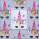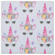 Fabric with a repeating pattern - designed with a trendy pink unicorn. Adorned with a fancy floral headpiece. Whimsical butterflies flying around.