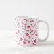 Pink Valentine's Day Hearts Birds Arrows Pattern on a white coffee mug, beverage cup.