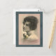Postcard features a beautiful young lady from early in the last century. She is bathed in a pink glow and framed in a gorgeous shade of blue. Postcard is completely customizable.
