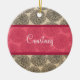 Elegant and modern Vintage Zinnia Ornament featuring a pretty textured floral background and an alluring magenta two-toned banner. Easy to customize, simply add the personalized text of your choosing in the text field provided. Click "Customize It" to find additional personalization options.