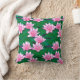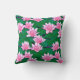 Pillow in a pattern of water lillis in soft shades of pink, and emerald green lily pads, floating on a pond