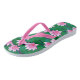 Flip Flops in a pattern of water lillis in soft shades of pink, and emerald green lily pads, floating on a pond