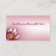 This business card design features a single water lily on the right front bottom corner and the back left bottom corner of the card over a white background. A complementary colour gradient runs along the top and bottom of the card. Personalize the text, remove any text or use the edit design tool to select a font style, size and colour you prefer.