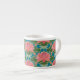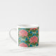 Une belle tasse à café Espresso, avec un motif de nénuphars roses et de libellules bleues, d'un collage en papier peint à la main par Judy Adamson. Excellent cadeau pour quelqu'un ayant un anniversaire de juillet; une partie de la collection Posh & Painterly 'Lily Pond'.