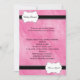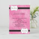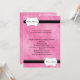 This precious baby shower invitation is a wonderful way to invite your guests to join you in celebrating your new arrival. This design has a pink background with a black border at the top and bottom. In the upper left corner there is a white scallop box that says Baby Shower. In the lower right corner there is a white scallop box that says It's a Girl. Your party details go in the centre and are completely customizable. Just add your Shower details and you are ready to go!