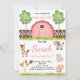 Pink Watercolor Barnyard Farm Birthday Invitation