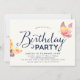 Pink Watercolor Butterflies Birthday Invitation