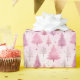 Pink Watercolor Christmas Tree Woodland Pattern Wrapping Paper