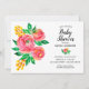 Beautiful abstract watercolor pink flower bouquet with yellow buds and green leaves with your baby shower details in chic lettering.