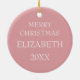 This beautiful ceramic Christmas ornament features a floral ornament in soft watercolor shades of pink and green. Personalize the holiday message on the back.