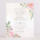 An elegant floral wedding invitation featuring pink watercolor flowers with modern handwritten calligraphy.