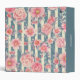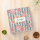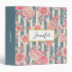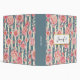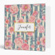 Personalized binder with a beautiful pattern featuring pretty pink flowers layered over top a striped pattern composed of blue and cream coloured stripes. A rectangle frame with a faux gold foil border layered over top with your personalized text inside. The spine also has space for your personalized name.