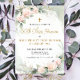 This beautiful class reunion invitation features pink and grey watercolor flowers with a gold cross. It’s perfect for a religious school reunion.