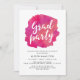Invite friends and family to your grad party with a pink watercolor graduation party invitation. The design features pink watercolor, a stylish script font, placeholders for your text, and a pink watercolor stripe pattern on the back.