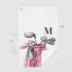 This cute monogram golf towel features a stylish pink watercolor golf bag filled with clubs, surrounded by a touch of green grass. The design cleverly incorporates a simple serif font initial monogram on the bag, seamlessly blending into the bag's design. Below the monogram, the full name is elegantly displayed in script typography, adding a personal touch. The monogram is currently in a dark gray, almost black, to match the bag's accents, but it can be customized to your preferred color. Perfect for the lady golfer in your life, this fun and stylish golf towel makes a great gift for Christmas, birthdays, Mother’s Day, or any special occasion. Personalized Initial Name Monogram Golf Towel Pink Watercolor Golf Bag Gift For Her Script Font.