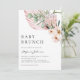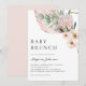 Invite guests to your event with this customizable baby brunch invitation. It features watercolor pink protea, orchids, palm leaves, and eucalyptus leaves. Personalize by adding your details. This tropical baby brunch invitation is perfect for summer and It's a Girl baby showers. The texts are fully editable for any event.
