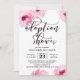 The stylish adoption baby shower invitation features pink watercolor flowers and a modern calligraphy font.