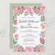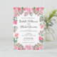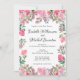 Soft pink watercolor roses and greenery create a beautiful frame for this summer wedding invitation. The vines and leaves cascade to frame the text. The wedding couple names are written in a large and flowing script. The remainder of the text is a simple seif font. Very easy to customize. The back of the invitation is a soft petal green. Look closely and you can see a subtle floral design.