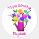 Pink Watering Pot & Yellow Flower Happy Birthday Classic Round Sticker
