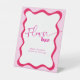 "Flower Bar - make a bouquet to take on your way" sign with hot pink wavy border for a modern and colourful Bridal Shower.