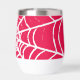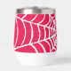 A spider's web forming in a bold pink coloured void.