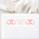 Minimalist wedding invitation envelope return address label bells design. Customise this pink coloured wedding invitation return address label with your wedding details. Should you require any help with customising then contact us through the link on this page. Pink bells design personalised wedding invitation return address label