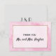 Pink wedding thank you in watercolor card