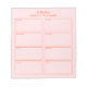 Bring a touch of modern sophistication to your organization routine with this minimalist notepad. Featuring a chic pink background adorned with crisp red text and boxes, this notepad exudes elegance and functionality. With dedicated sections for each day of the week, alongside a extra notes area, planning your week has never been more convenient. Whether you're scheduling appointments, tracking tasks, or jotting down ideas, this notepad offers the perfect blend of style and practicality. Stay organized and feel free to edit the colours and fonts to match your personal brand!