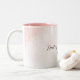 The cups were exactly what I expected them to be, it has sturdy handle and is perfect size for enjoying hot cup of coffee. Loved the two tones, black on the inside keeps the cup looking clean and new. I was very satisfied with the logo and the lettering. It was exactly as I expected it to be. Loved that I could personalize the cups with their names and wedding date. Wish I had made their names a little bigger but all in all I am very happy with them. I wish I could upload a picture but I already have them wrapped up for a gift.