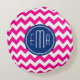 Pink White And Blue Monogram Chevron Pattern Round Pillow