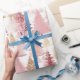 Pink White and Gold Brush Christmas Tree Pattern Wrapping Paper