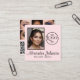 Pink White & Black Script Makeup Photo Personalize Square Business Card
