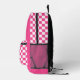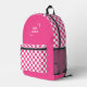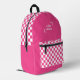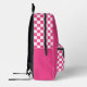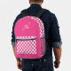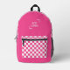 Pink White Chequerboard Check Pattern Logo Printed Backpack features a retro pink and white chequerboard pattern with your custom business logo. Perfect for corporate gifts, school, sports, gym, travel and more. Designed by ©2025 Evco Studio www.zazzle.com/store/evcostudio