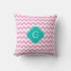 Pink White Chevron Zigzag Teal Quatrefoil Monogram Throw Pillow