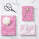 Pink and white Christmas typography and dots holiday Wrapping Paper Sheets. The first sheet features the text "Merry Christmas" in white on pink, the second white polka dots on pink and the third the text "Merry Christmas" in pink on white.
